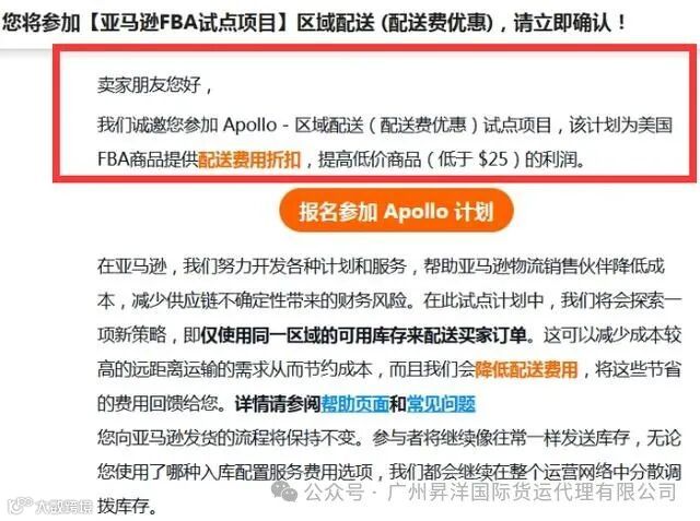Apollo计划也是9月9日至11月15日实行,该计划针对售价低于25美元的商品,参加了这个计划之后,亚马逊将提供部分FBA费用折扣,进一步降低小件商品的运营成本。