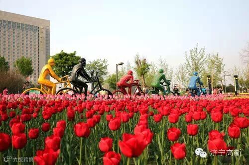 而此时流动的水声和鸟鸣像在为新的征程谱写漫游的华章,在郁金香的盛开之际,带孩子赏春的父母们也许早已陶醉在充满春天气息的郁金香花海中,孩子们也格外享受大自然的馈赠,有的低头弯腰去亲吻刚绽放的花朵,有的则拿起画板专注的画画,有的围在灰太狼喜洋洋的雕塑旁嬉戏……此时此景,一幅生动和谐的画面!