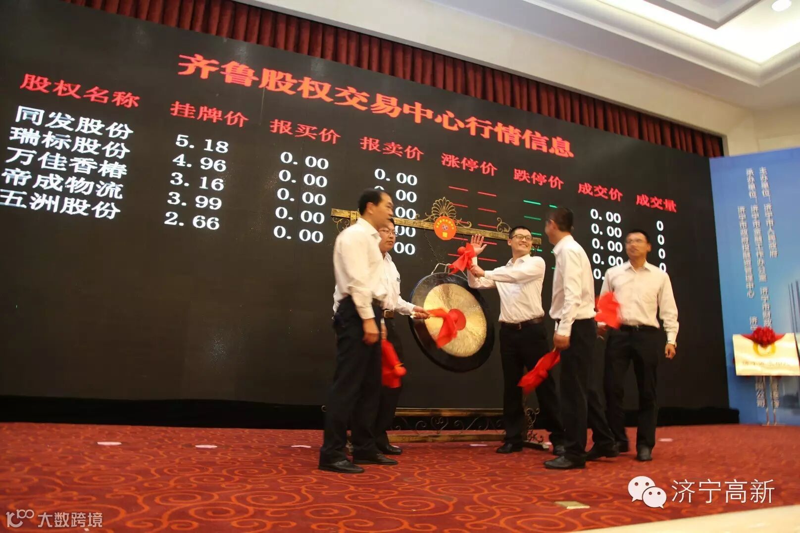 副市长、济宁高新区党工委书记白山主持了新三板、齐鲁股权交易中心挂牌企业鸣锣仪式。