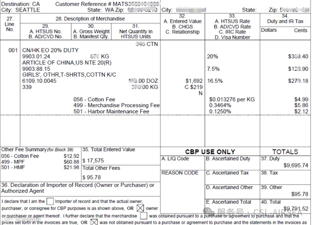 *以下是我们美国清关行在3月5号清关放行的税单,海关系统显示新的加征代码9903.01.24 20%。
