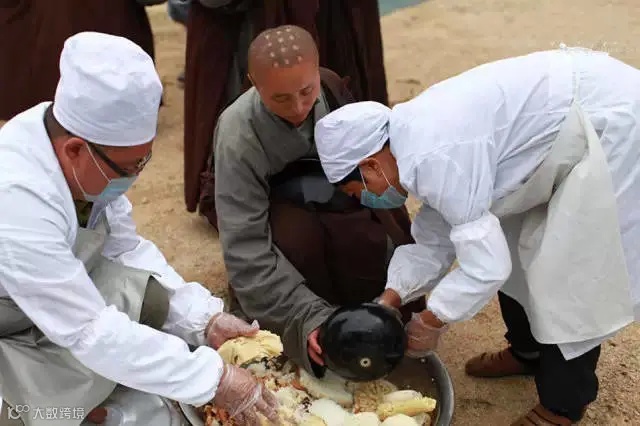 “出食”:僧人们在过斋前先布施食物给鬼神等众生,以熄灭贪心,增长慈悲。