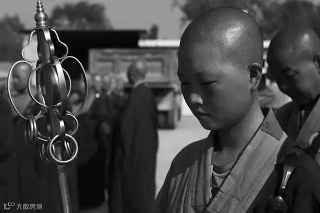 与住持同组的僧人须手持锡杖,前往乞食。