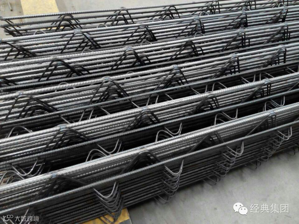 钢筋桁架楼承板是将楼板中的钢筋在工厂采用设备加工成钢筋桁架,并将钢筋桁架与镀锌钢板在工厂焊接成一体的组合模板。该模板系统是将混凝土楼板中的钢筋与施工模板组合为一体,组成一个在施工阶段能够承受湿混凝土自重及施工荷载的承重构件,并且该构件在施工阶段可作为钢梁的侧向支撑使用。在使用阶段,钢筋桁架与混凝土共同工作,承受使用荷载。 经典集团生产的钢筋桁架楼承板适用于民宅,多高层,大型厂房,广泛应用于钢结构楼板、钢筋混凝土结构楼板、钢筋混凝土预制楼板等不同楼板体系。