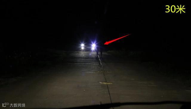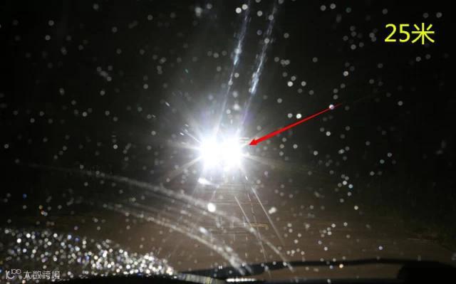 如上图所示,示范者的安全距离只从25米扩展到了40米,由于少了远光那么强烈的干扰,行人相对更容易识别。可见主动在会车时提前切换至近光,对行人和自己的行车安全都有好处。