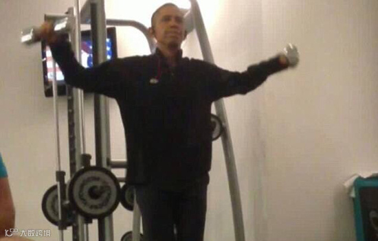 日理万机的美国总统奥巴马被拍到在波兰一所酒店的健身房中举铁