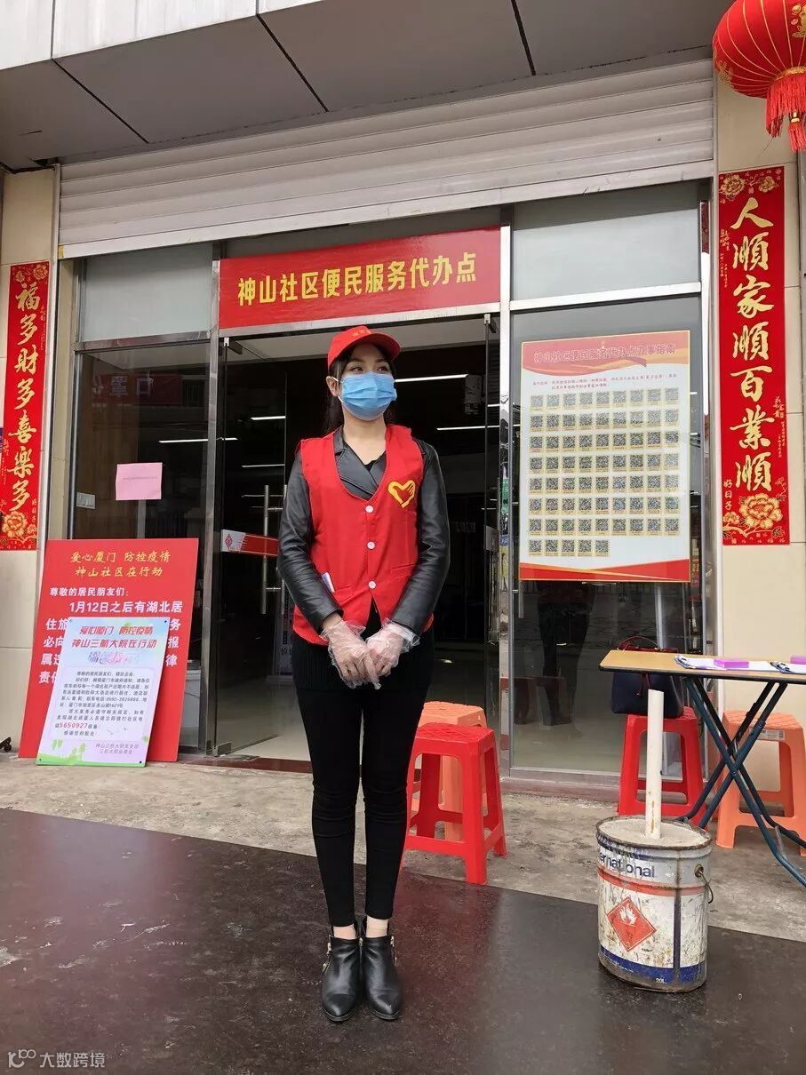 党员林伟坚在湖里区嘉福社区,站岗在防疫第一线,已在嘉福花园小区十几天轮守。
