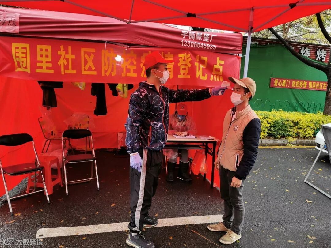 党员陈胜利在集美区后溪镇前进村,夜以继日阻击病毒。
