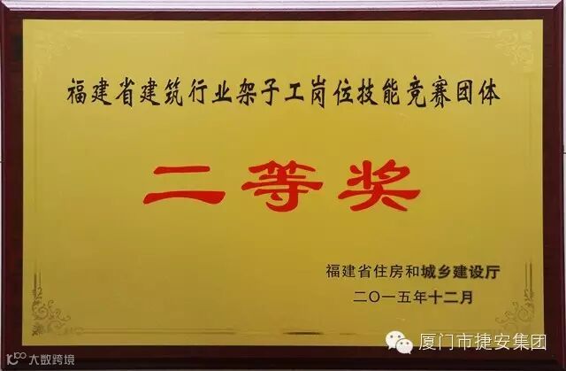 2015年12月7日至9日在福州举行全省建筑行业“中建海峡杯”架子工岗位技能竞赛,我公司荣获本次竞赛二等奖。