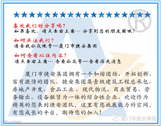 【新朋友】点击标题下面蓝色字 “厦门市捷安集团” 关注