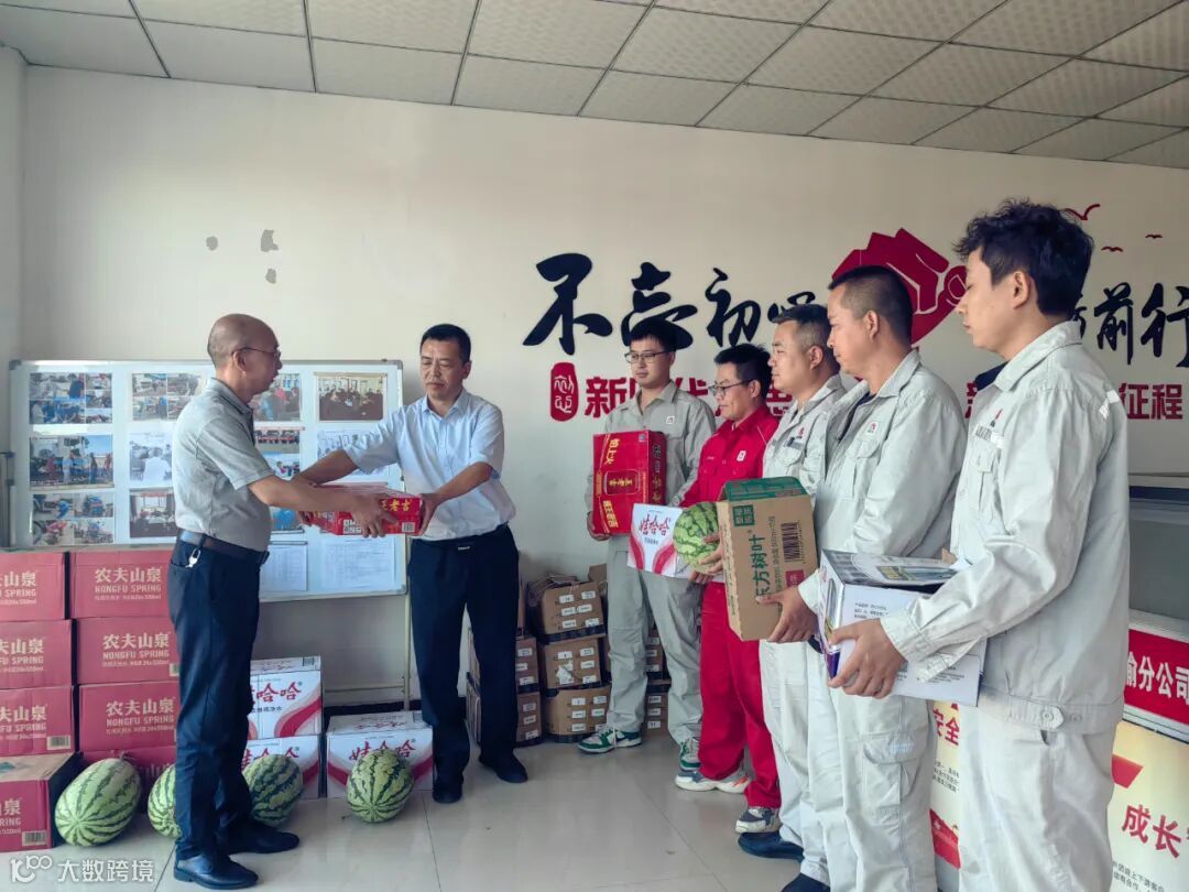 慰问现场,公司领导班子成员分别前往各中心、驻队,将清凉慰问品逐一递到员工手中。一是对物流一线驾押人员等,叮嘱其务必做好车辆防晒、车内通风等防护工作,在保障运输任务安全高效推进的同时,合理调整作息,确保身体健康。二是对员工们顶烈日、战酷暑,始终坚守岗位的敬业精神给予高度肯定,代表公司向大家的辛勤付出表示衷心感谢,并仔细询问大家在高温环境下的作业时长、轮休安排以及防暑措施落实情况。三是要求大家始终把安全生产摆在首位,扎实做好夏季防汛等各项安全防护工作,确保在高温天气下各项生产任务安全有序推进。