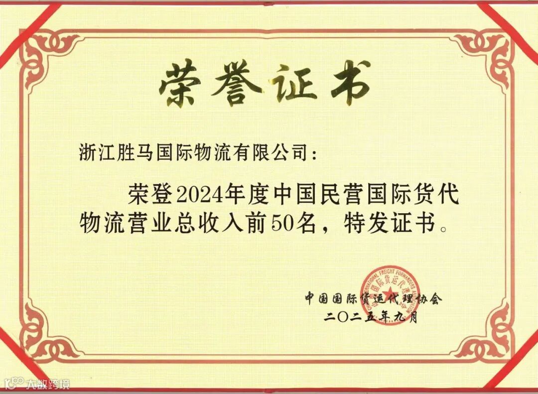 近日,浙江胜马国际物流有限公司荣登 “中国国际货代物流百强企业” 与 “中国国际货代物流民营50强企业” 榜单。这是行业的认可,更是客户的信赖。