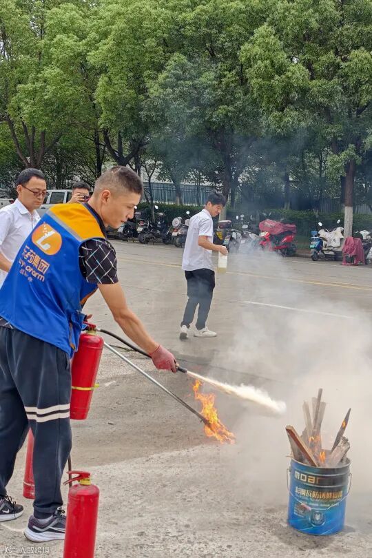 理论讲解后,大家在安全员的指导下,分组进行灭火器灭火及消火栓出水实操,通过亲手操作,切实掌握了扑灭初期火灾的核心技能。