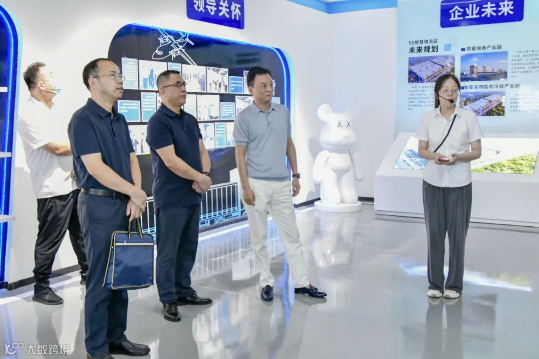 随后,胡处长一行来到二楼物流科技馆进行参观,实地了解了我司物流科技馆序厅、未来园区、时空隧道、综合运输、智慧仓储、智能配送六大模块。展厅综合展示5G、区块链、网络无人化等各种技术在物流园区、仓储、运输、配送等方面的应用情景,并就未来物流科技领域的技术趋势进行了相互交流。