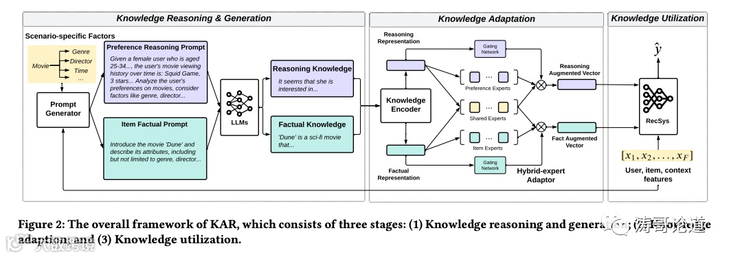 KAR将开放世界知识转换为与任何推荐模型兼容且灵活使用的稠密向量。