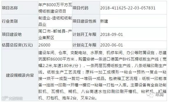 河南新增7个纸板、纸箱项目,最高投资2.6亿元