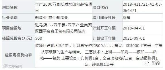 2.西平县科美包装材料有限公司年产2000万套纸质水印包装箱项目