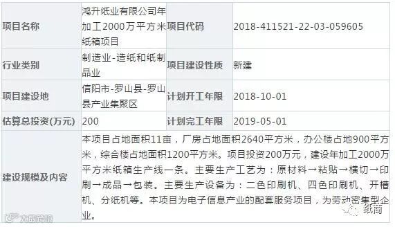 5.罗山县鸿升纸业有限公司年加工2000万平方米纸箱项目