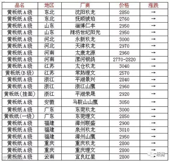 浙江嘉兴山鹰(吉安)纸业,黄板上调50-100元/吨。