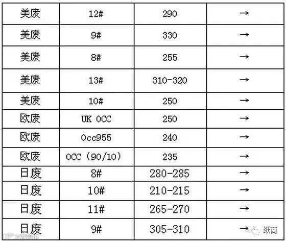 云南宜良红星兄弟纸业,废纸价格上调50-100元/吨。