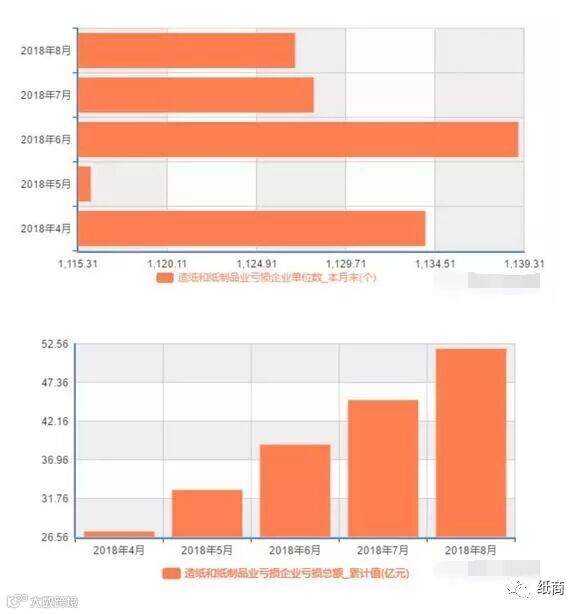 根据国家统计局最新数据显示,8月份造纸和纸制品业亏损企业为1127个,累计亏损金额52亿元。