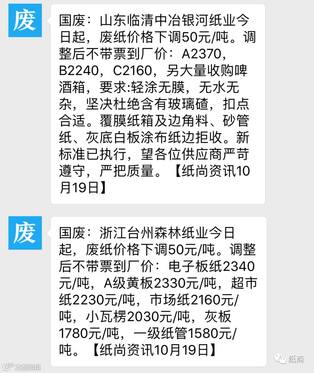 今日全国废纸价格