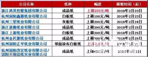 杭州引发纸业有限公司:从2018年3月3日起,成品纸价格上调200元/吨!