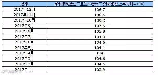8、2017年12月全国纸制品制造业工业生产者出厂价格指数