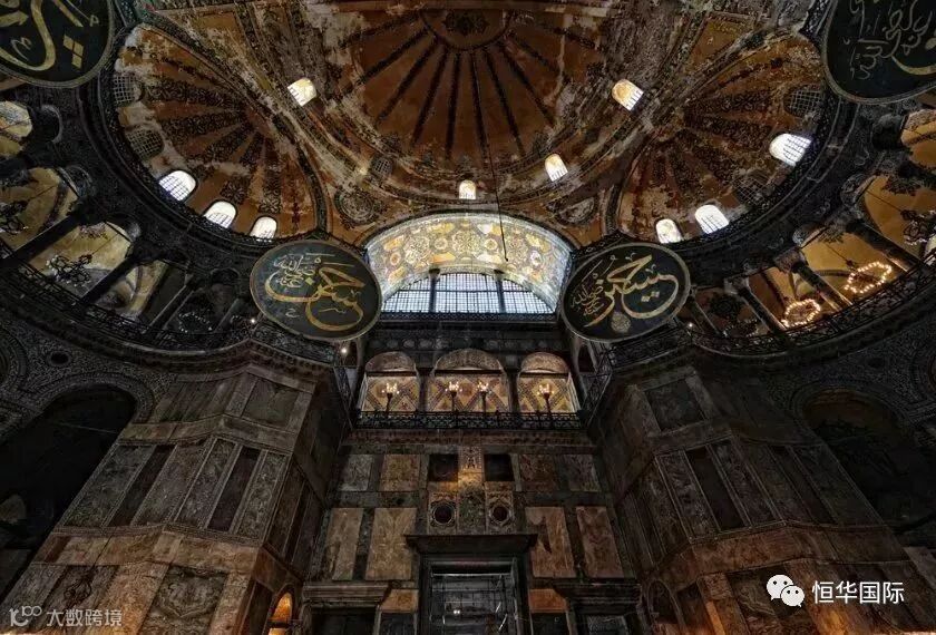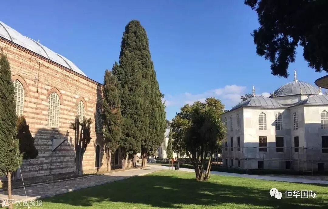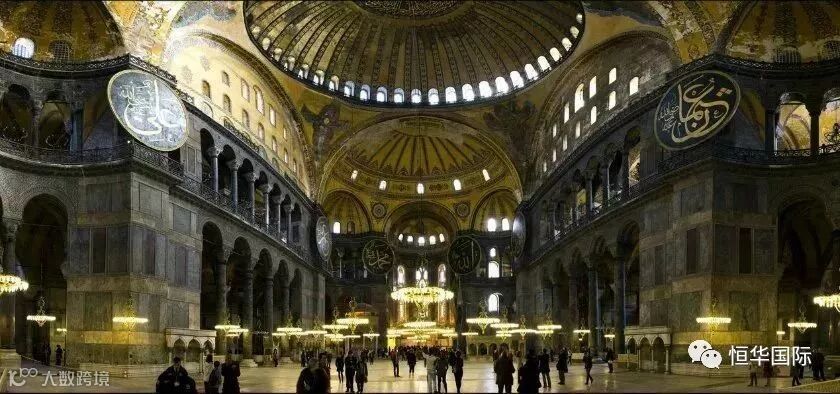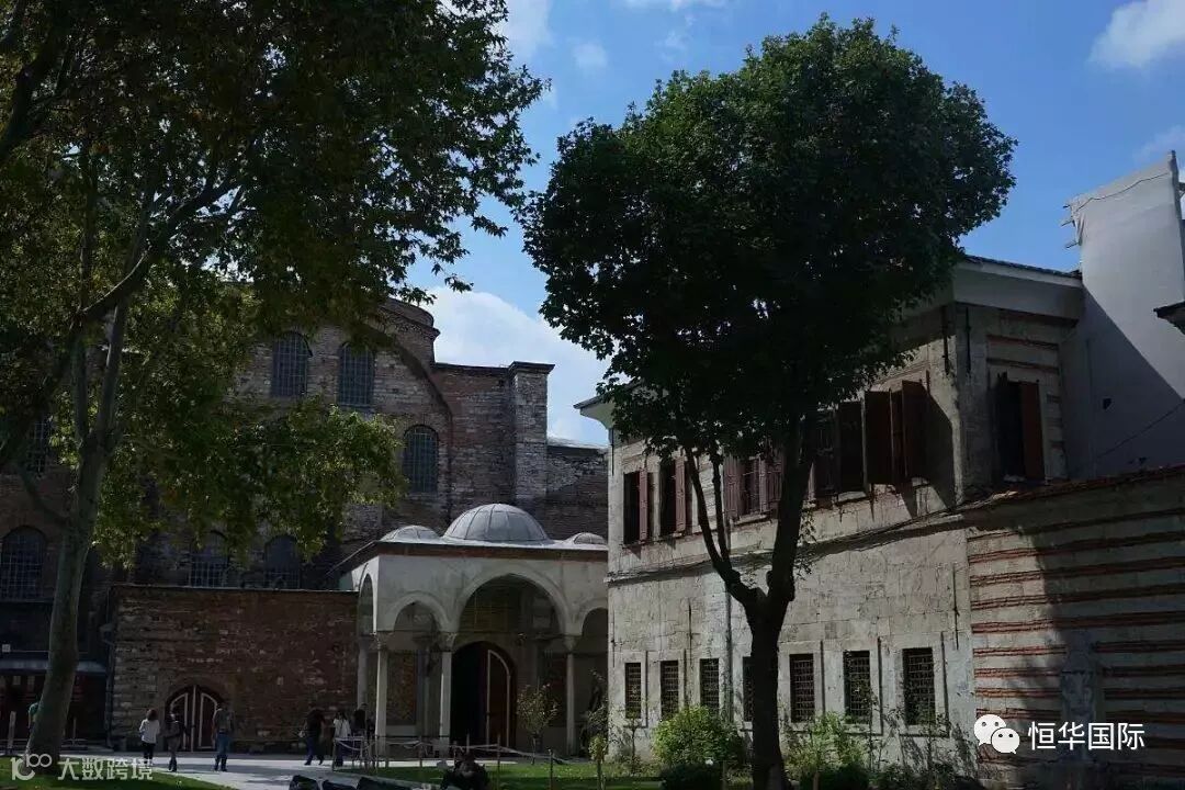 与蓝色清真寺隔街相望,拜占庭文化的典范,为基督徒和伊斯兰教徒共有