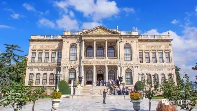 玛巴赫切宫,建于19世纪中叶奥斯曼帝国时期,但却是巴洛克和新古典主义风格相融合的一座皇宫,也被称为“新宫”。坐落在博斯普鲁斯海峡欧洲部分的沿岸,建筑群沿着海峡绵延600米,占地1.5万平方米,房间285间,大厅43间,气势恢弘,显示出曾经奥斯曼帝国的辉煌与富庶。