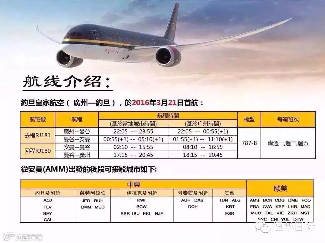 CAN始发,优势目的地:AMM,AQJ,BKK