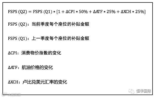 其次,将油价、卢比兑美元汇率以及通货膨胀转换成指数。按照财务季度对单位补贴金额进行调整,具体计算公如下:(公式中每个因素影响程度由百分比表示,占比由航空公司运营成本决定)
