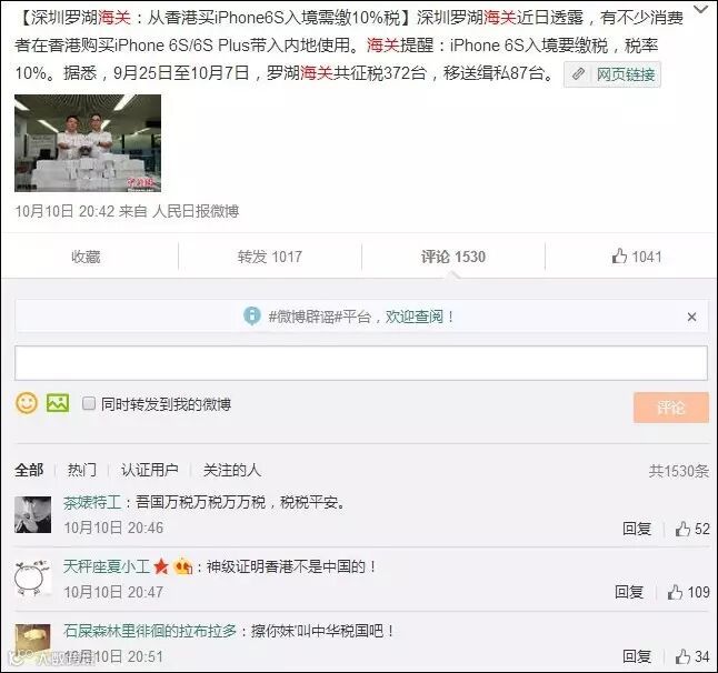 香港到底是不是中国的?在如此微小的利益面前就证明了这个问题。别谈什么一国两制,深圳没有权利这么做。我只知道,从海外购物才收取关税。