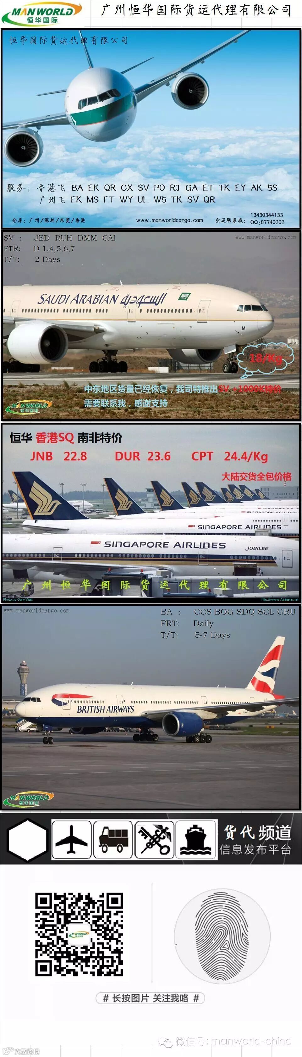 恒华O2O平台,主营 广州/香港/澳门 空运:W5,EK,QR,EY,ET,TK,UC,GF,BA,CX,AF,UL.SV...