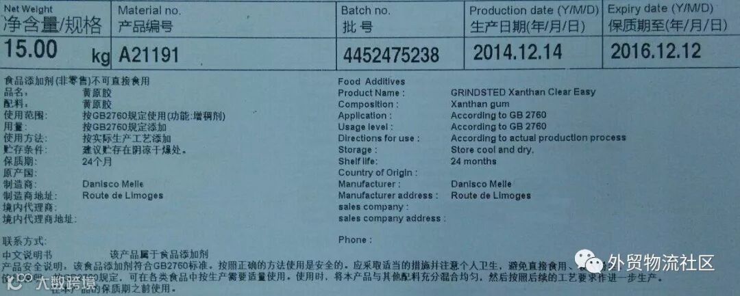 1. 该等物质的名称须在配料表中指明