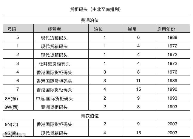 I. 香港的公众货物装卸区一共分为以下6个点: