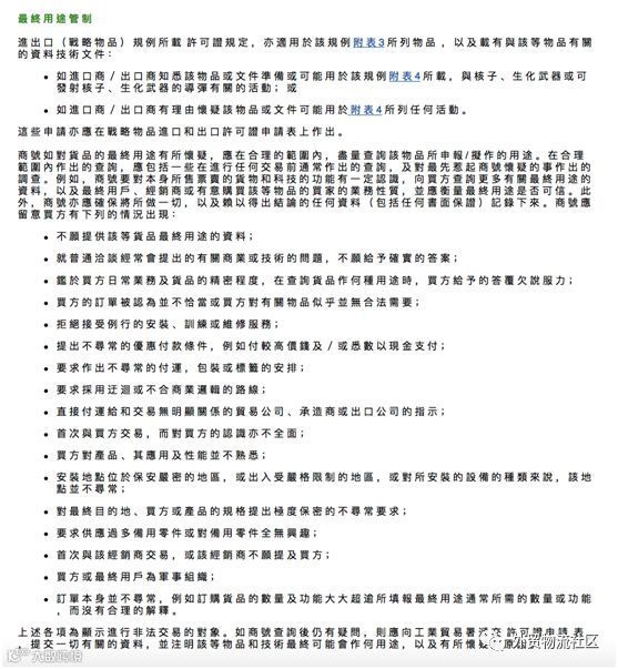社区温馨提示大家注意即将运输的货物是否属于管制项目,例如一些电子设备(比如SERVER-路由器及I.C-集成電路等)。所有货物都有必要先查证货物是否受到管制?是否需要出口证书才能完成出口?