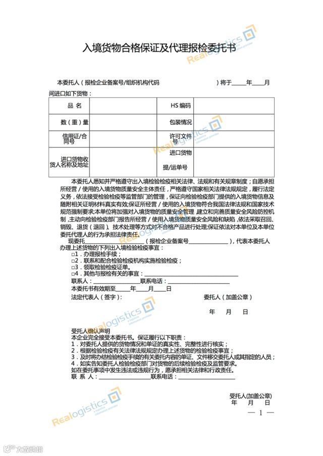 青岛新版本包括《报检委托书》