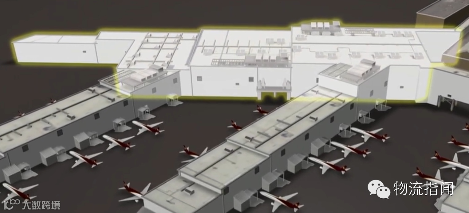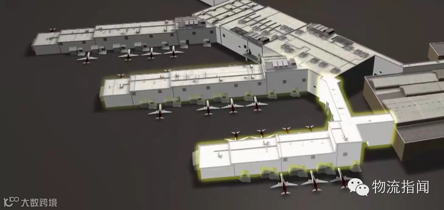 图4,处理中心连接有44个货运站和3大货机收发侧翼