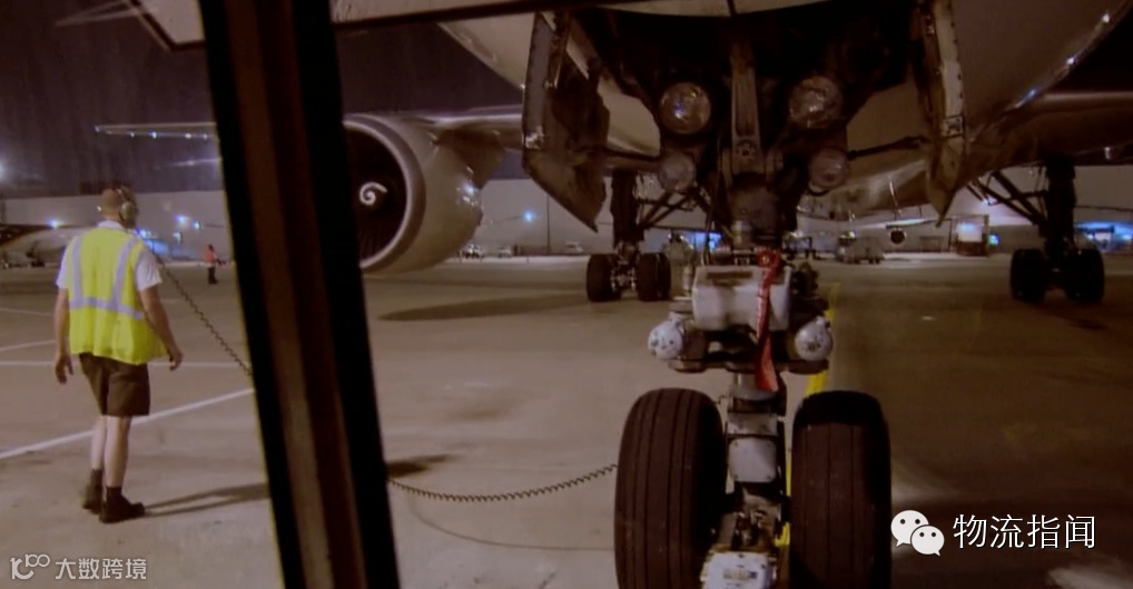 晚上11点半,这架UPS货机开始降落在UPS世界港机场,地面上有数十架货机等待装卸货物,地面保障人员必须有极高的效率才能完成这些工作。飞行员只有数分钟的事件操控飞机滑进航展侧翼,地面引导员和飞行员通力协作才能保证任务高效安全的完成。机场引导员指引货机进入卸货区,所有的其他团队成员马上把货柜卸入世界港的巨大传送带中。UPS世界港从高空俯瞰就像一个规模庞大的机场航站楼,跑道后方有A、B、C三个侧翼,能够同时进行44架货机的装卸任务,在一个繁忙的工作夜晚,9千名工人要在4小时内写下80多万件货物。由于隔夜快递的巨大需求,起重作业基本都是在晚上最忙碌的时候展开,现在工作的重心落到了货运地勤人员的身上。