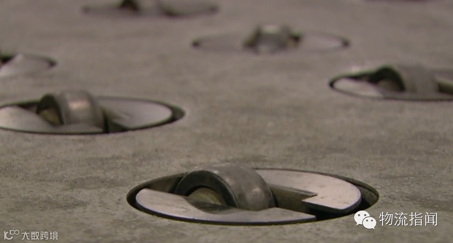 UPS通过试误法找到解决方案,引入创新性的滚珠轴承地板(图16)。这种特制的滚珠轴承地板在表面安装有成排的钢珠滚珠轴承和塑胶皮滚轮,轴承用2个螺栓装在地面上,它可以随意的旋转滚动,即使是重型的货柜也能移动自如,这个巧妙的设计成为地勤们完成任务的不二法门,一个人就能搬动重达一顿的货柜。