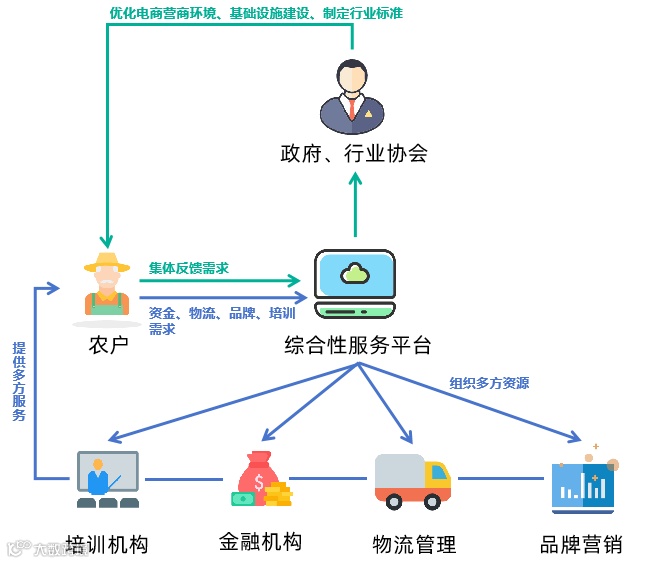 平台与政府、协会:平台可了解小而散的农村电商需求并反馈至政府、行业协会,为电商营商环境优化、基础设施建设、行业标准制定提供参考;