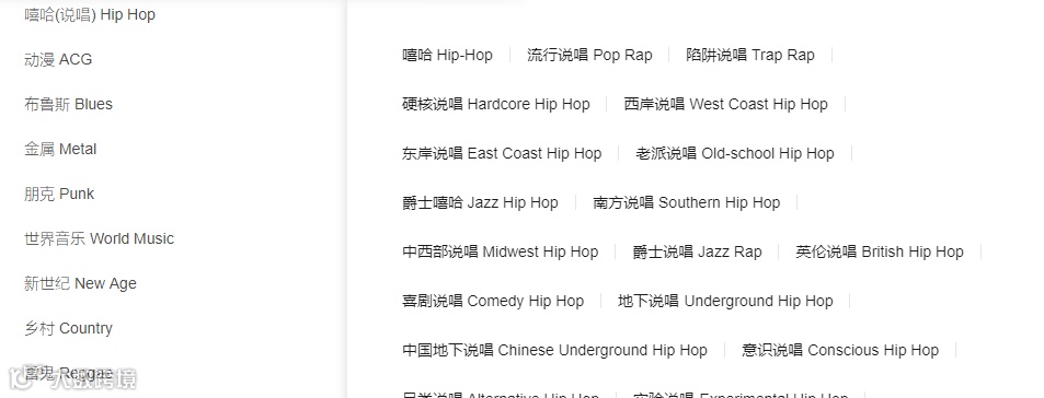 设置了严格的准入门槛,虾米招揽了一批对音乐史、小众音乐有着深入了解的同好。他们也为虾米带来了较为专业的音乐分类,平台上共设置了24种曲风,并按照细分领域划分出近百种音乐赛道。虾米内部一直认为自己做的是“音乐图书馆”,并以帮助用户建立起音乐体系为荣。