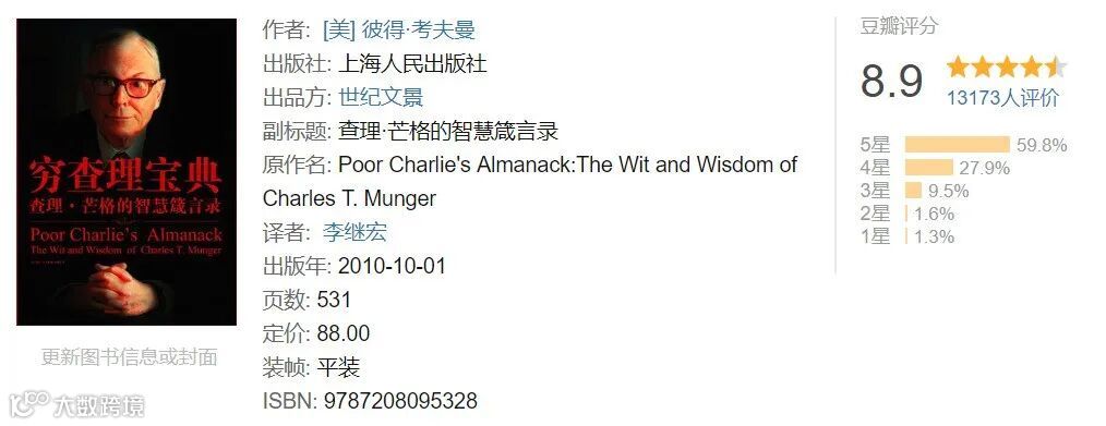 而最后最珍贵的十一篇讲稿则全面展现了这个传奇人物的聪明才智。贯穿全书的是芒格展示出来的聪慧、机智,其令人敬服的价值观和深不可测的修辞天赋。他拥有百科全书式的知识,所以从古代的雄辩家,到18、19世纪的欧洲文豪,再到当代的流行文化偶像,这些人的名言他都能信手拈来,并用这些来强调终身学习和保持求知欲望的好处。
