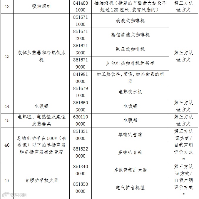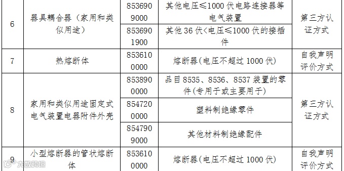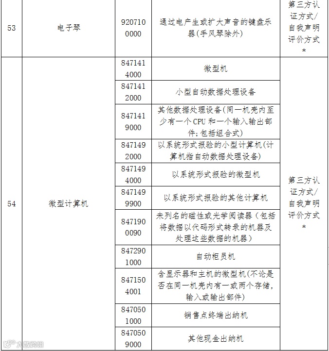 注:“﹡”代表:对于信息技术设备、音视频设备中的部分产品(标称额定电压小于等于5VDC,标称额定消耗功率小于15W(或15VA),且无可充电电池的设备(III类设备)),采用自我声明评价方式。