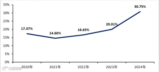2020年-2024年浙商中拓国际业务营收占比