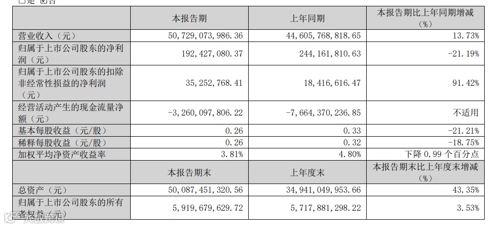 其中第四季度,公司营业收入为546.9亿元,同比上升6.7%;归母净利润亏损4931万元,同比下降126.2%;扣非归母净利润亏损1.71亿元,同比下降416.2%;EPS为-0.0696元。截至四季度末,公司总资产349.41亿元,较上年度末增长1.3%;归母净资产为57.18亿元,较上年度末下降3.0%。