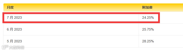 2023年7月份dhl国际快递燃油附加费费率为:24.25%
