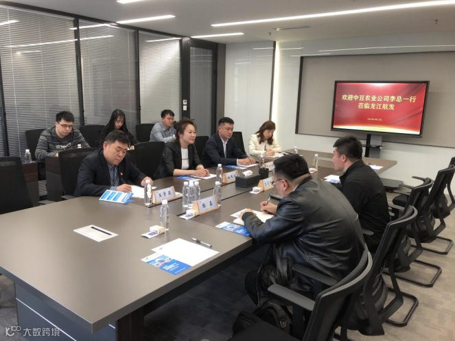 4月27日,黑龙江省航空货运发展有限公司(以下简称“龙江航发”)与黑龙江中豆农业发展有限公司(以下简称“中豆农业”)总经理李冠鹏一行就大豆深加工产业、黑河大豆冰淇淋线下新零售及跨境电商领域开展合作进行座谈交流。本次会议由龙江航发党委委员、副总经理杜伟欣主持,同时邀请海南经济特区龙运控股集团有限公司总经理尹鹤群,龙江航发市场拓展部相关同志参加座谈。