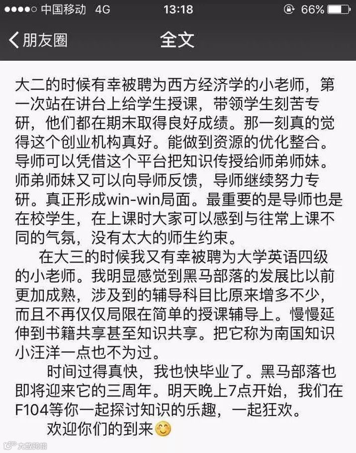 第七环节第一代黑马部落负责人钟东霞师姐上台交流经验~