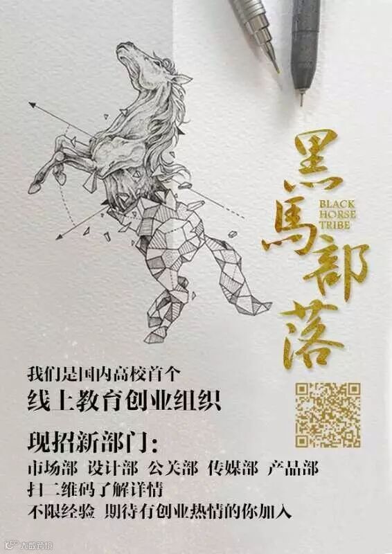 黑马部落,旨在面向校内学生招募各专业学科精英,并以学生角度出发为在校大学生提供考前有偿辅导服务的创业项目。成立于2014年5月,并于同年9月被立为广东省创新创业训练计划项目且已拨5000元创业资金赞助。